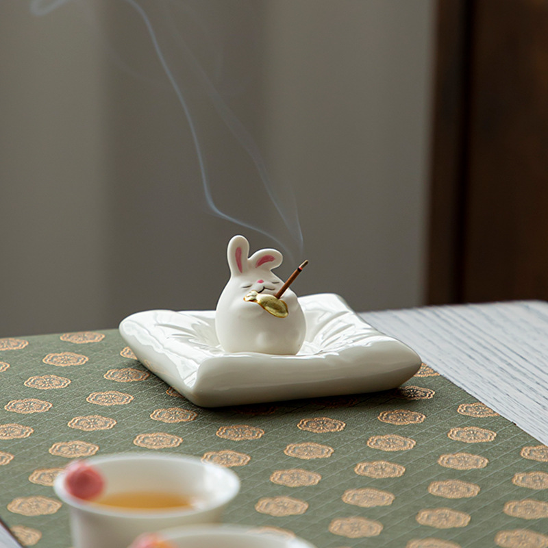 【陶磁器のウサギの香挿し】家庭用香挿し線香炉の箸棚の置物の線香挿しのかわいい線香炉の置物