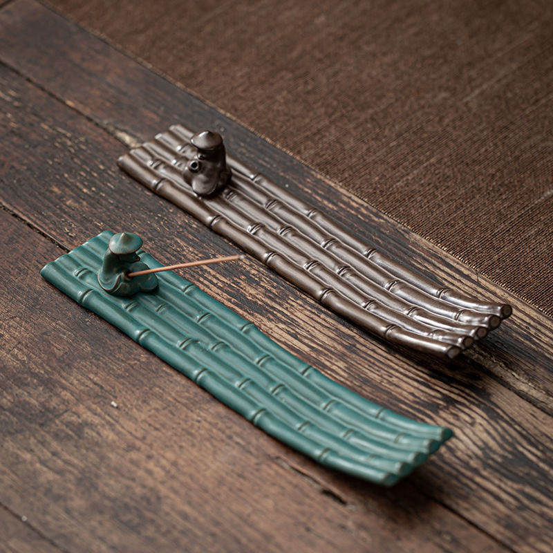 竹の線香は携帯茶室の薫香炉檀香托香座竹彫刻中国式禅意置物に挿します。