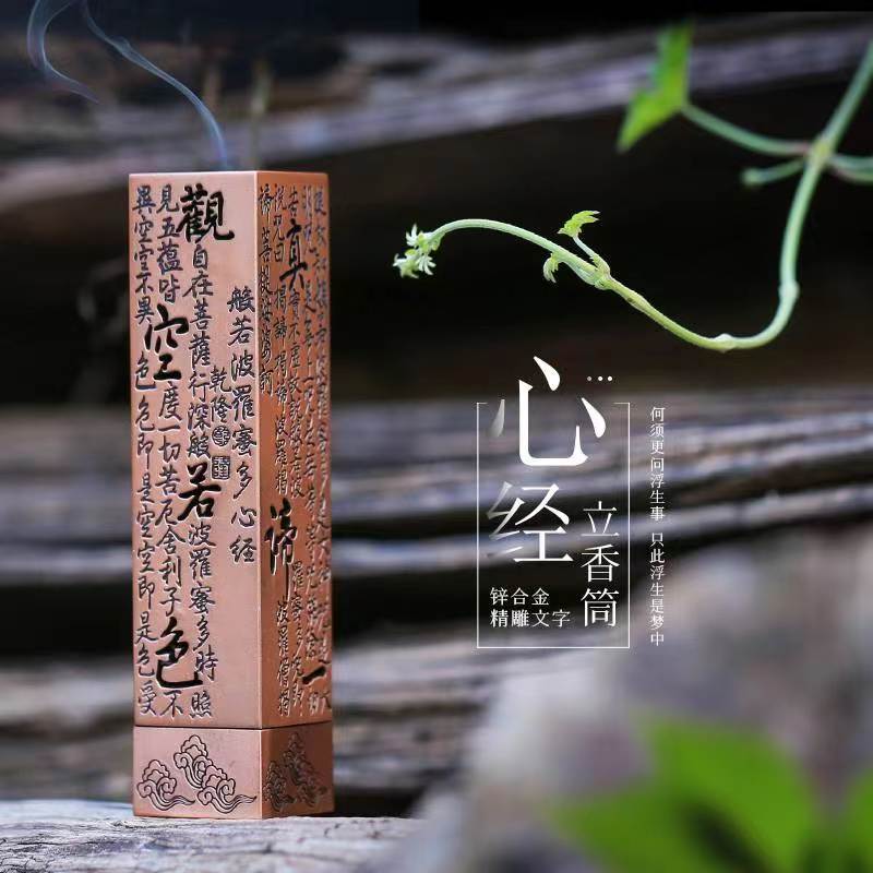 アンティーク般若心経銅香炉垂直香管レトロ香炉合金クリエイティブ香座香道香挿入沈香白檀