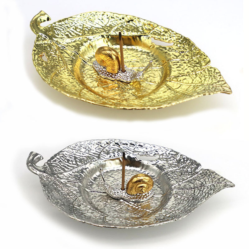 アンティークの合金のコースターの工夫の部品の木の葉の透かし彫りの金属の断熱パッドのカタツムリの香りの挿し込みの香托の香ばしい皿