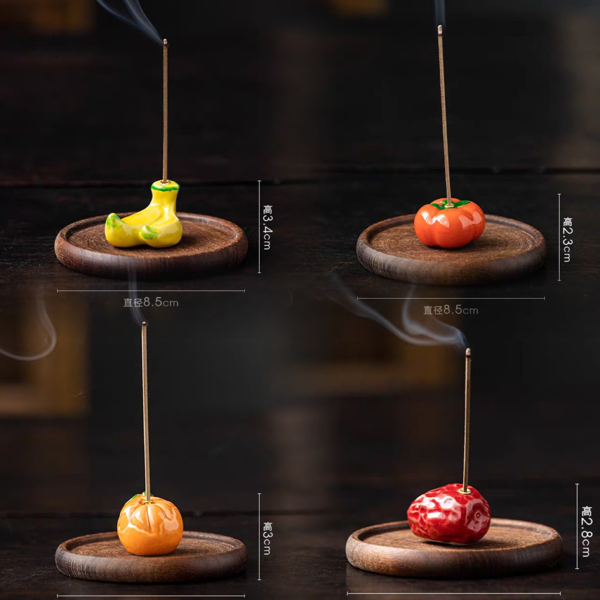 柿柿如意檀香炉線香立て禅意置物木製香炉セット黒檀木手作り中国風