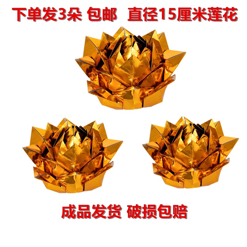 15cm 純粋な手作りの黄金の蓮の花 3 個、金蓮の花、カラフルな蓮の花、金箔紙、完成品、発送