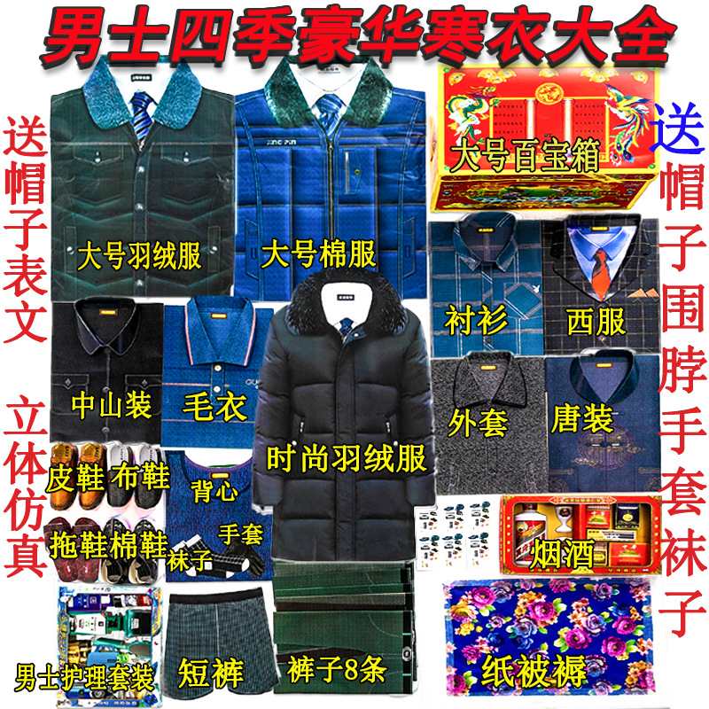 10月1日の男性の寒服祭の服一式、寒服の祭り用品、紙幣、冥銭、四季の服