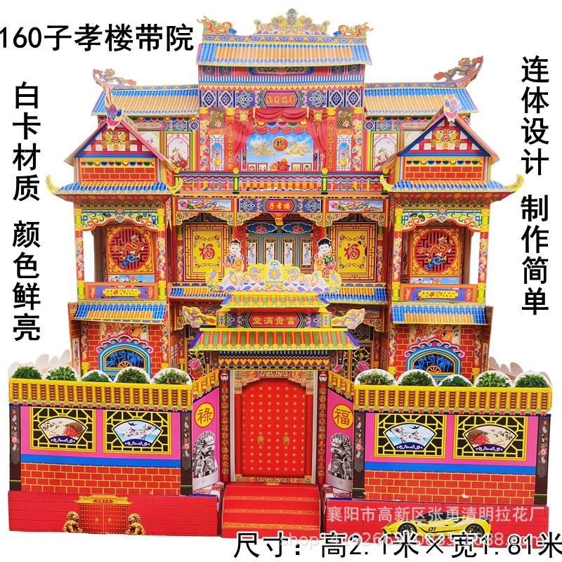 160 Zixiaolou 庭付き拡張バージョン竹骨組みヴィラ霊屋冥界葬儀白紙祭り祖先葬儀用品