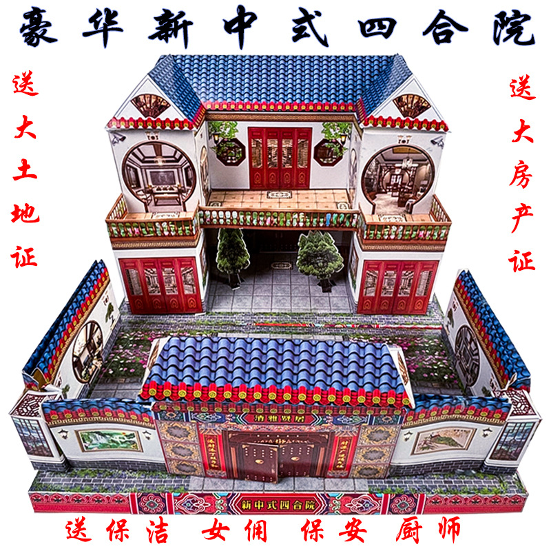 新しい折りたたみヴィラ Juxianlou 四合院紙製半製品卸売紙製品完全な紙製の家