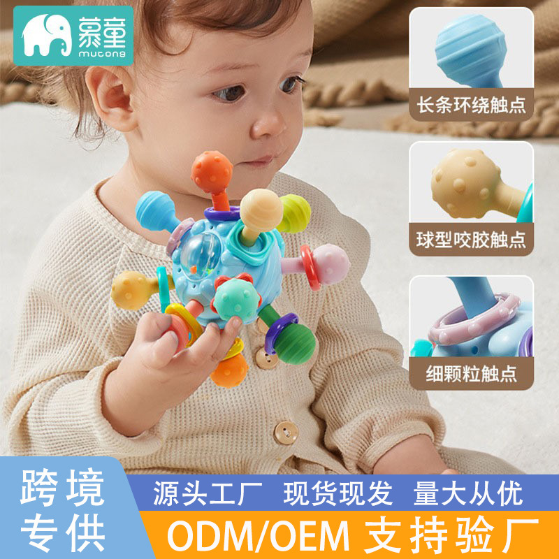 国境を越えた知育児童玩具マンハッタン原子球乳児歯ぎしりソフトゴムは、歯ぎしり手でボールをつかむ音がする