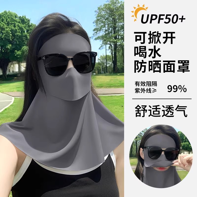新しい大開口飲料水日焼け止めマスクショール一体型フルフェイス抗UV拡大首保護フェイスマスク女性用