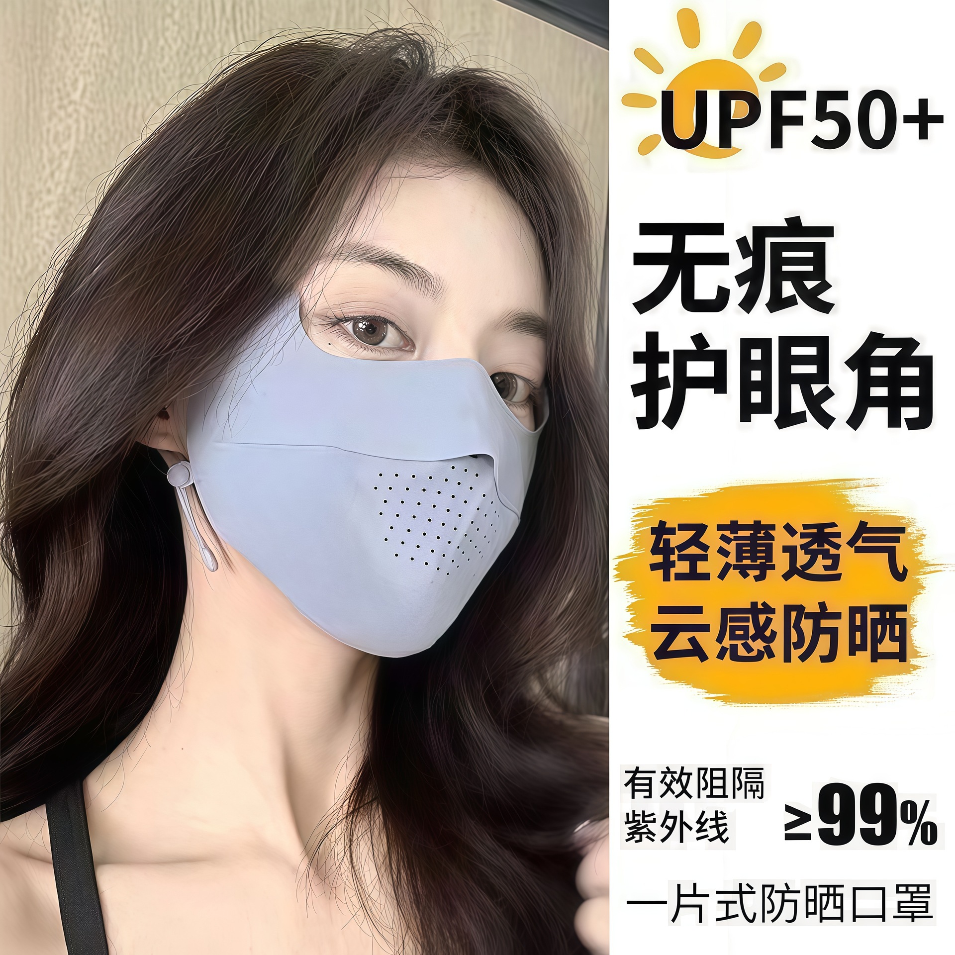 夏の無痕日焼け止めマスク紫外線防止高顔値薄通気氷糸目尻全顔マスクヒアルロン酸