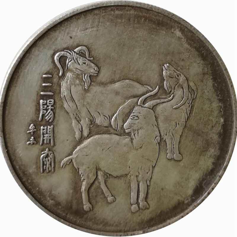 三陽開泰は古銀円の家庭装飾品の工芸品のレトロな中国風の国潮の硬貨のおもちゃの贈り物をまねます。