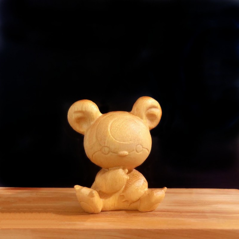 黄楊木彫り熊の赤ちゃんの漫画のかわいい子供のおもちゃの子供の木の彫刻のデスクトップの置物の記念の贈り物