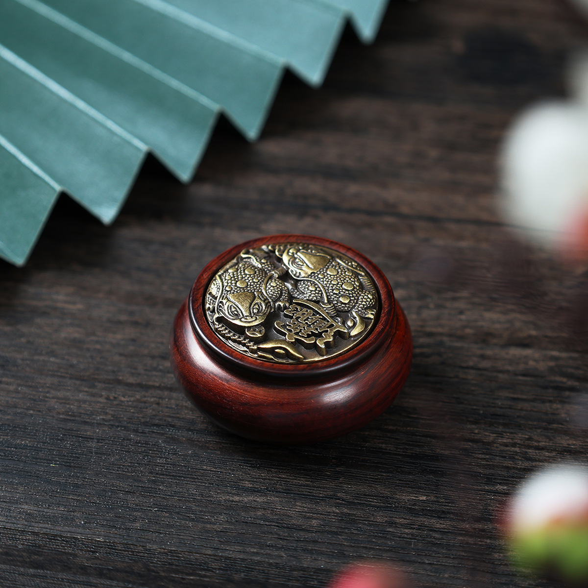 紫檀聚宝盆の取っ手の真鍮の金を儲ける文は遊びます。