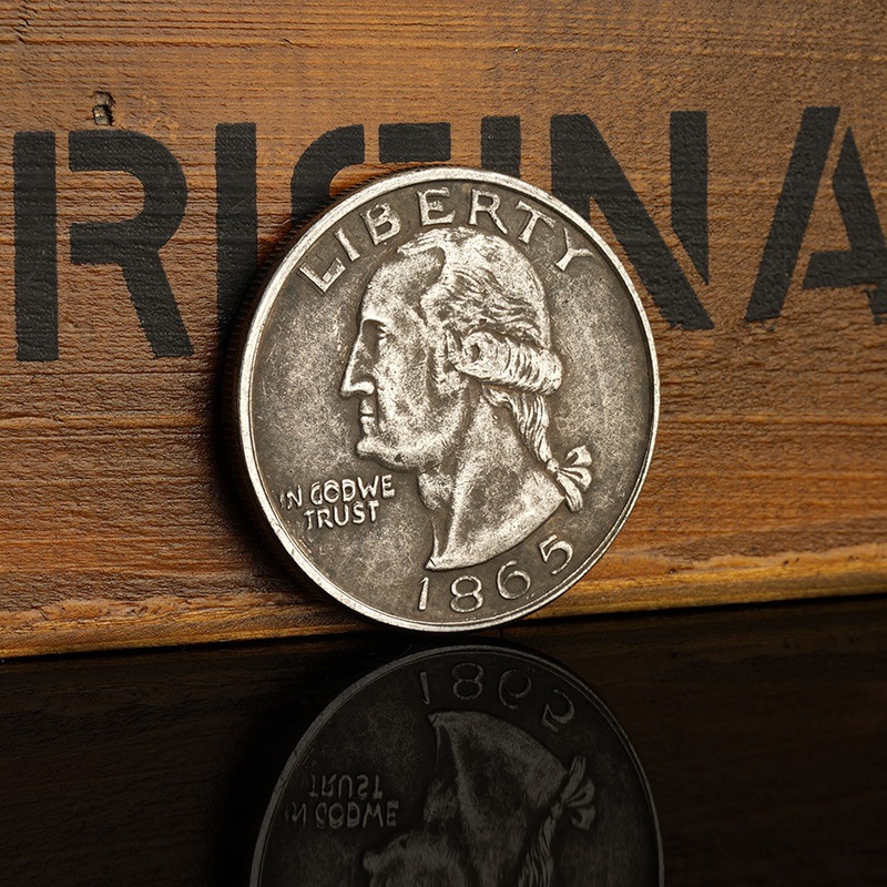 アメリカの1865ワシントンの顔は古風なアイデアに似せて硬貨を飾ります。