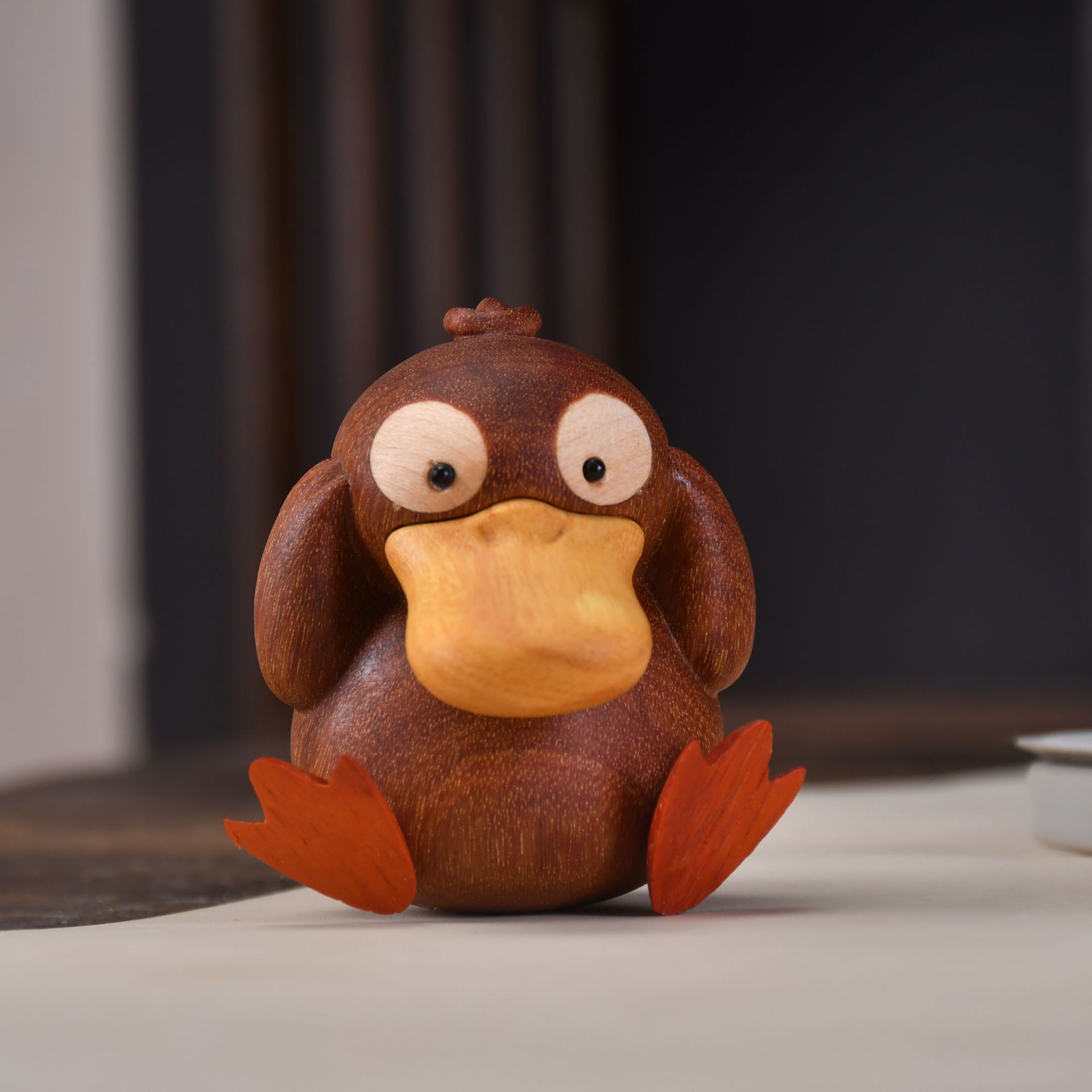 ブラックウォールナット彫刻動物装飾品ポケモンダックポケモンオフィスクリエイティブおもちゃ装飾品