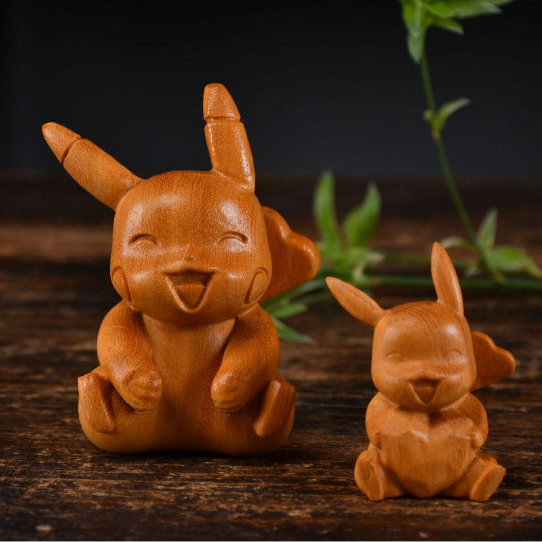 黄金檀木雕ピカチュウポケモンかわいい漫画ハンドルピースウサギホームティーテーブル工芸品お茶游び