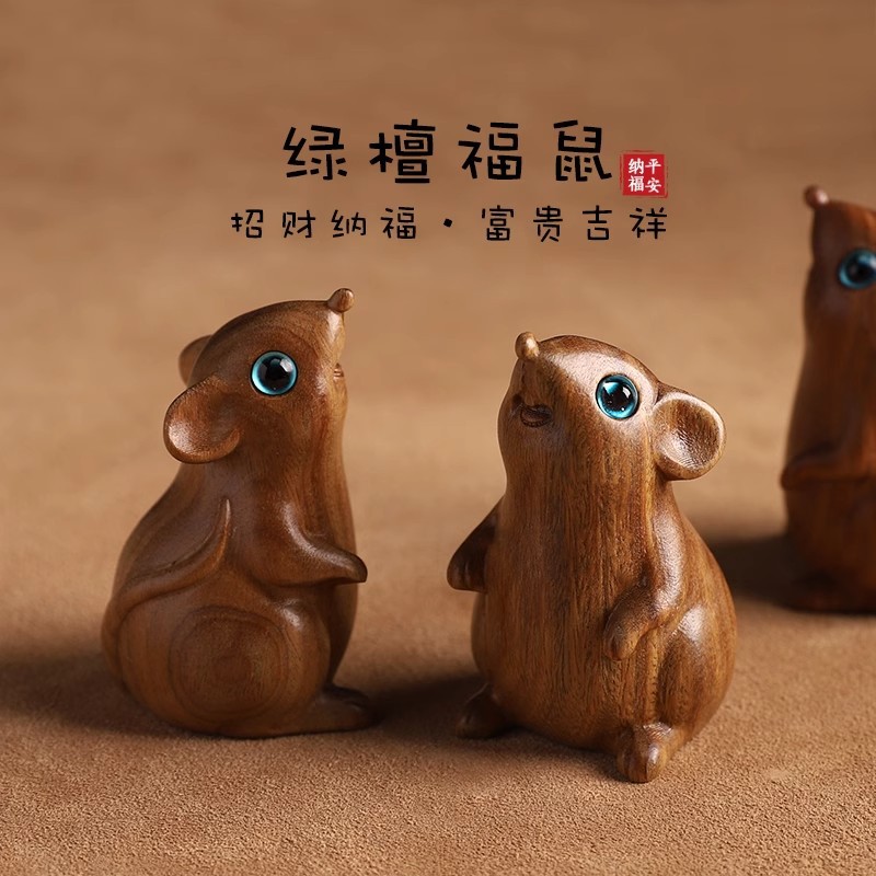 緑檀のネズミの置物生肖鼠の木彫りの手作り工芸品のテーブルの装飾は簡単です。