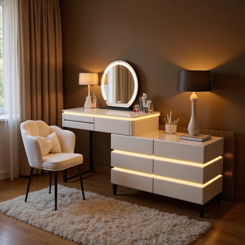 小型の寝室用化粧台収納キャビネット一体型、モダンでシンプル、小型で軽やかな高級感のある化粧台、軽奢スタイル