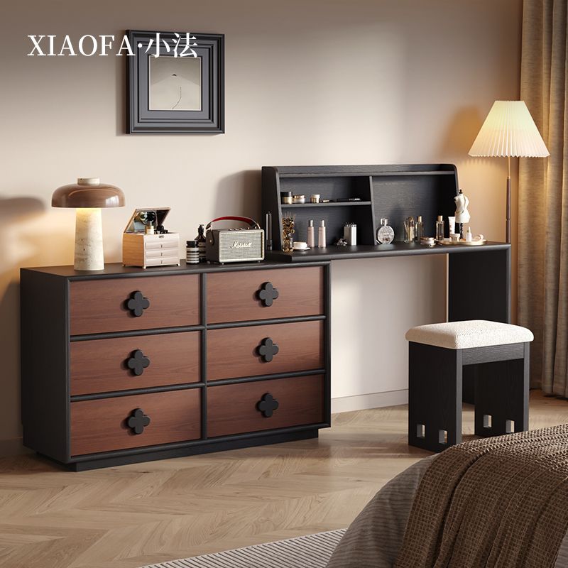 中世スタイルの全無垢材塗装ドレッシングテーブル化粧テーブルチェスト一体型ウォールナット2025新しいスタイルライトラグジュアリー