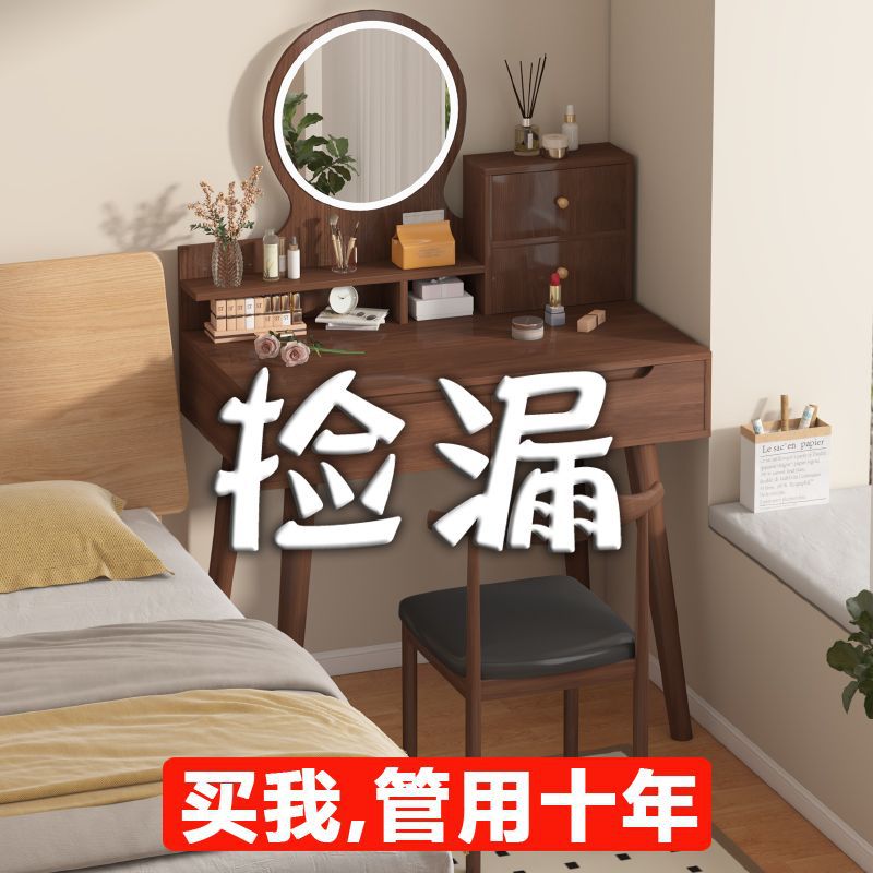クリーム風無垢材ドレッシングテーブルウォールナットカラーメイクアップテーブルとキャビネット一体型モダンシンプルメイクアップテーブル新しいスタイルの寝室