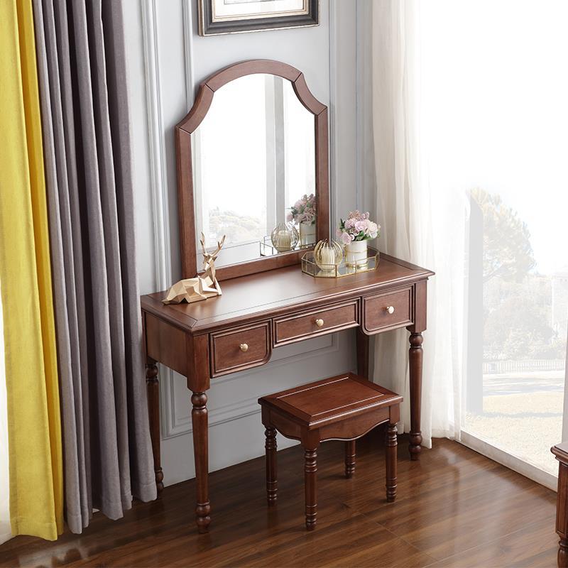 レトロなスタイルのチェストとドレッシングテーブル一体型寝室無垢材フレームベッドサイド収納チェスト小さなアパートデスクドレッシングテーブル
