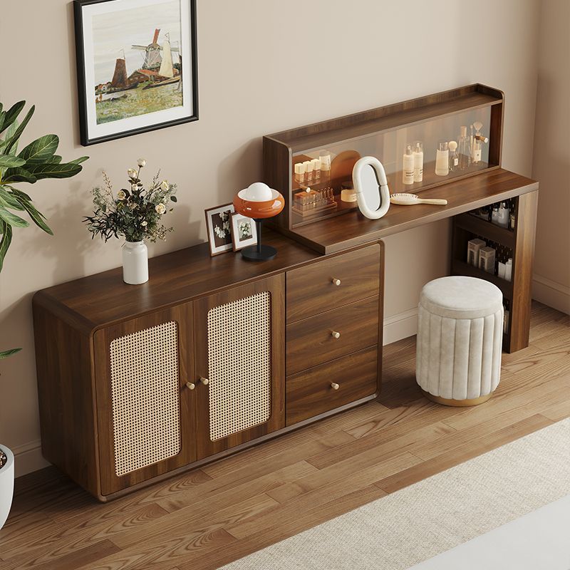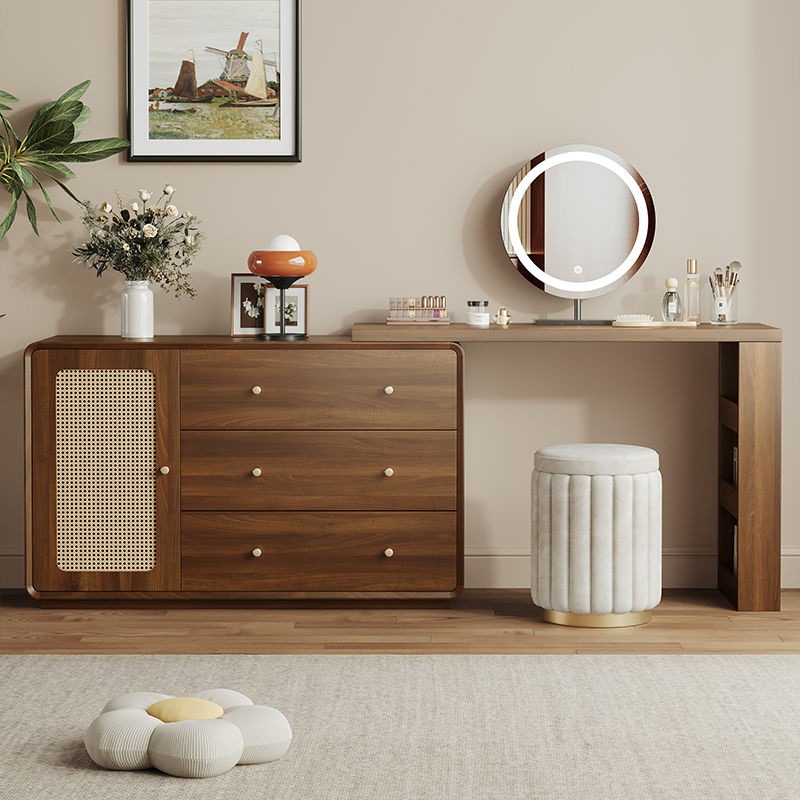 レトロなスタイルの籐無垢材ドレッシングテーブル一体型収納キャビネット 2024 新しい寝室格納式コーナードレッシングテーブル