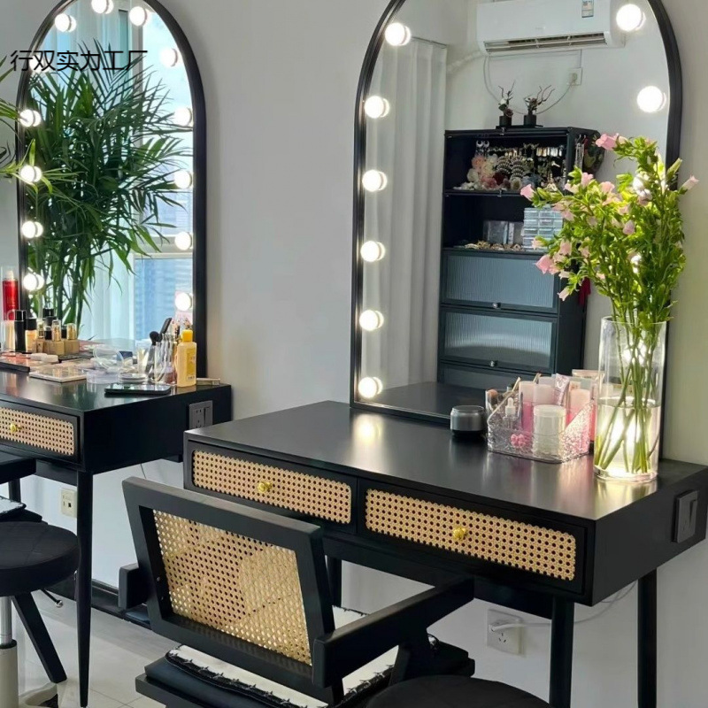 籐織りの高級フォトスタジオプロフェッショナルライト付きドレッシングテーブルウェディングドレスショップビューティーサロンスタジオメイクアップアーティスト専用ドレッシングテーブル