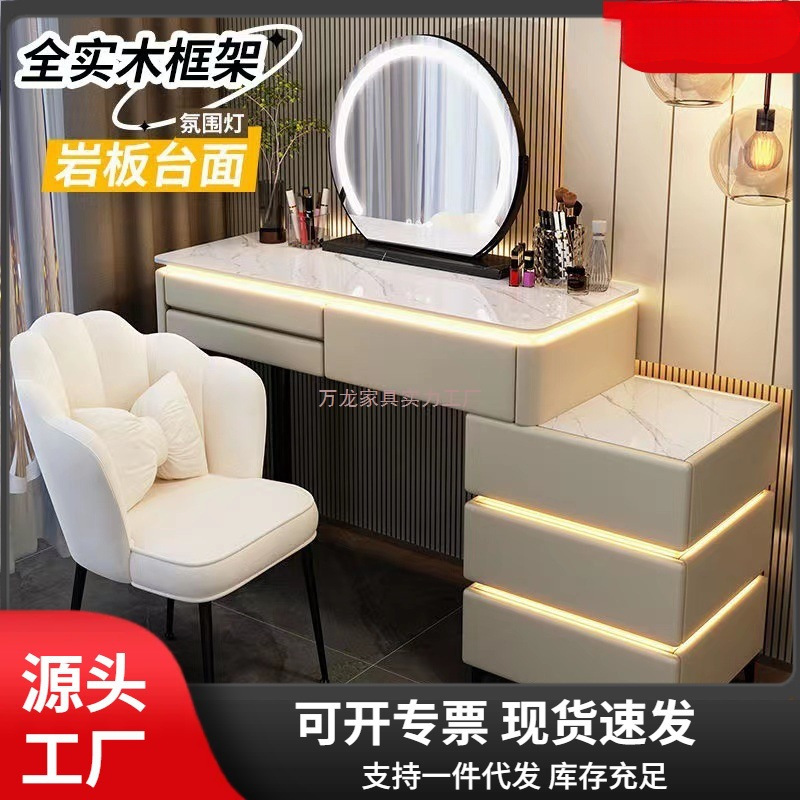 2025 新しいモダンなシンプルなドレッシングテーブルクリームスタイルの化粧テーブル小さなアパートライト高級化粧テーブルロックボードドレッシングテーブル