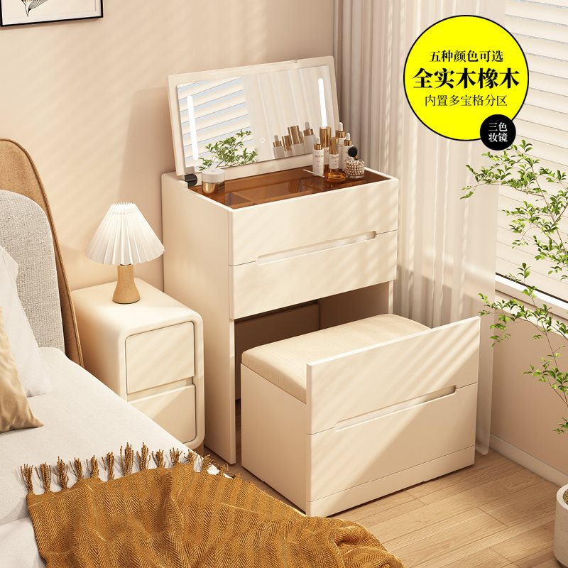 新しい無垢材の巾木ドレッシングテーブルモダンでシンプルなクリームスタイルの小さなアパートのドレッシングテーブル寝室のベッドサイド一体型キャビネット
