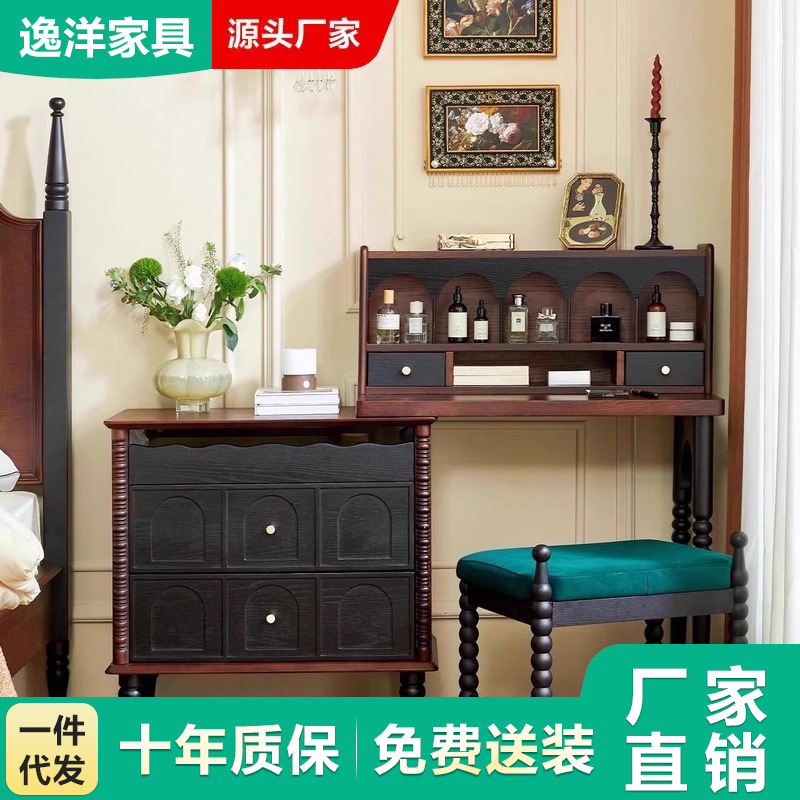 アメリカン無垢材ドレッシングテーブルとキャビネット一体型ミッドセンチュリースタイルベッドルームベッドサイドキャビネットコーナーフレンチレトロメイクアップテーブルデスク