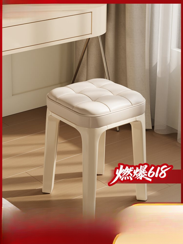 クリームスタイルのスツール化粧スツール女の子の寝室のドレッシングテーブル椅子モダンなシンプルな家庭用積み重ね可能なプラスチック厚み