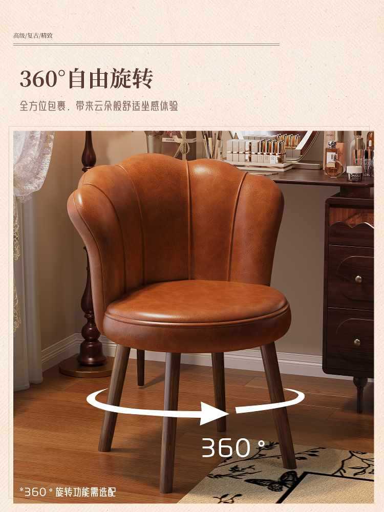 ✅ 中世スタイルの無垢材化粧スツール家庭用回転化粧椅子ドレッシングテーブル椅子背もたれスツール女の子の寝室ライト