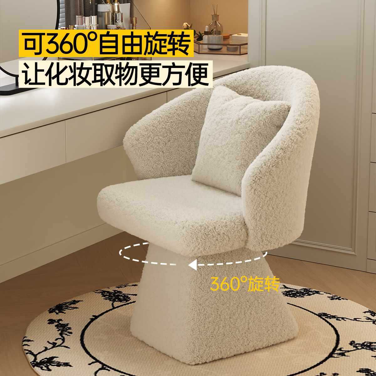 ✅ Sanmeng 回転化粧椅子女の子の寝室のドレッシングテーブル新しい化粧スツールライト高級クロークスツール