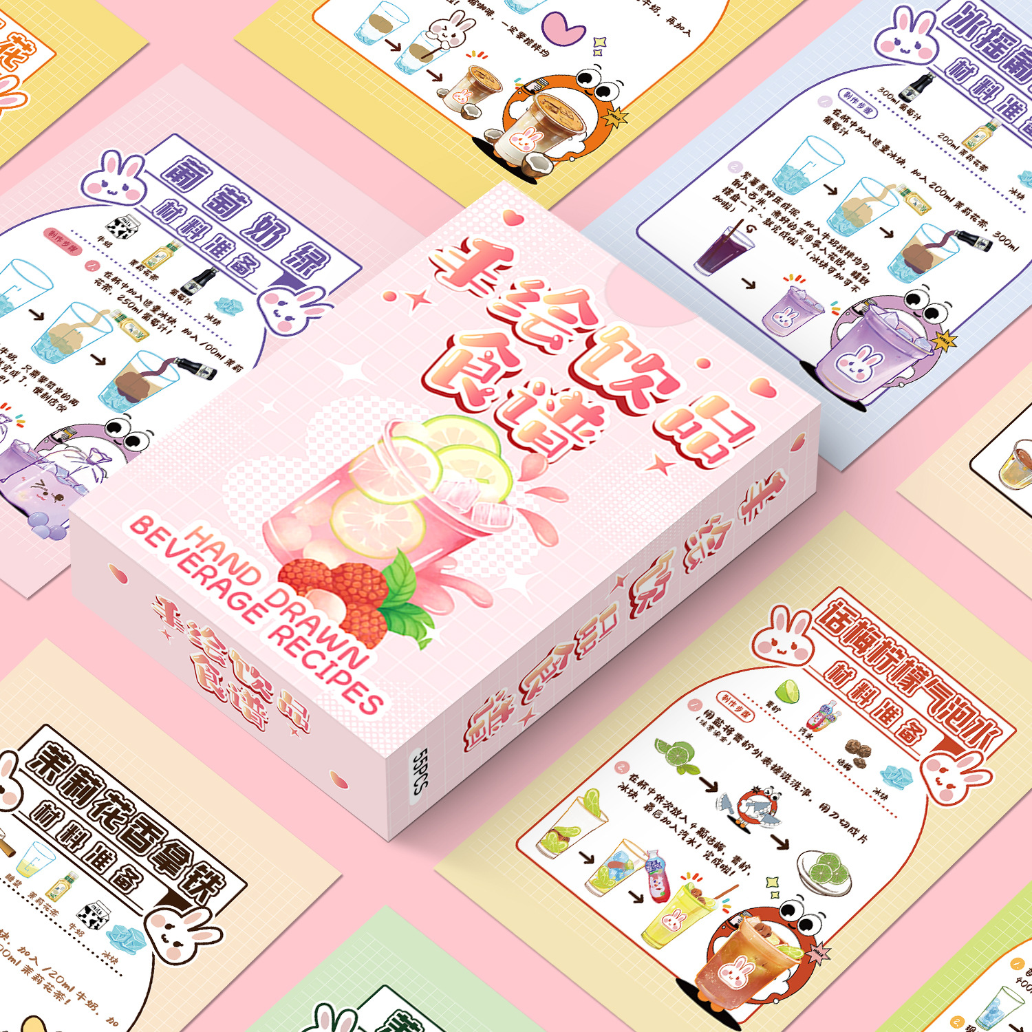 55枚の国境を越えた手描きのレシピカード、子供たちが飲み物を作る知識を学ぶチュートリアル、ポストカード、おもちゃ、小さなギフト