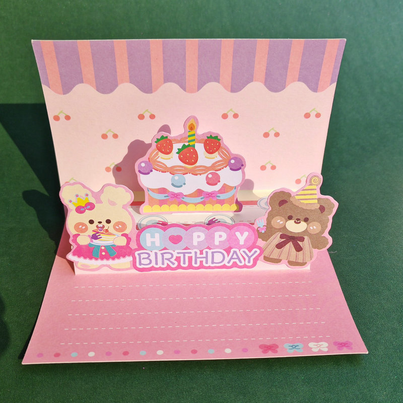 クリエイティブ漫画立体グリーティングカードかわいいベアー誕生日ケーキ祝福カード折り畳みグリーティングカードプレゼントメーカー供給