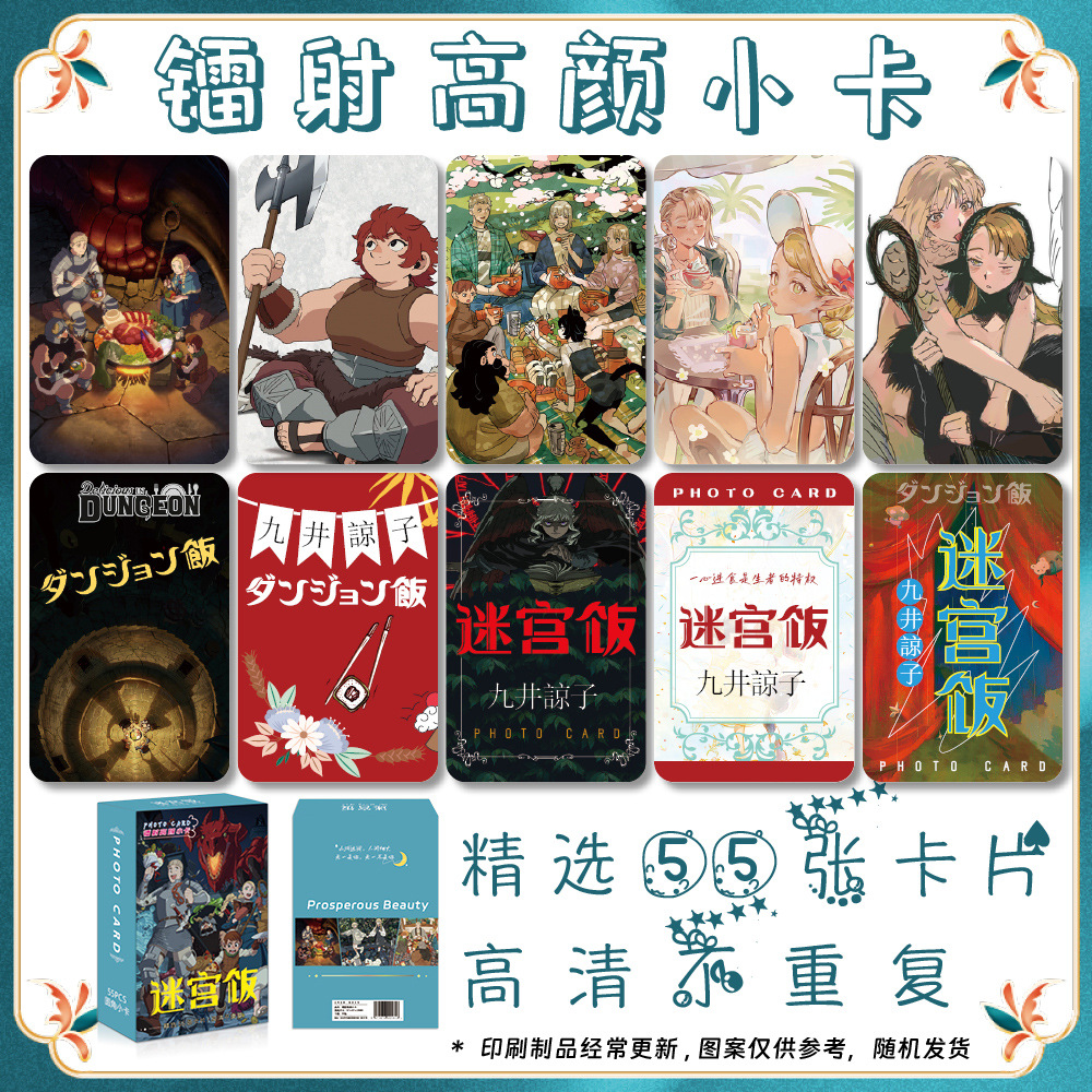 迷宮飯の周辺のレーザーの角の小さいカードの55枚の1箱のlomoカードは高清の収集カードを撮影します。