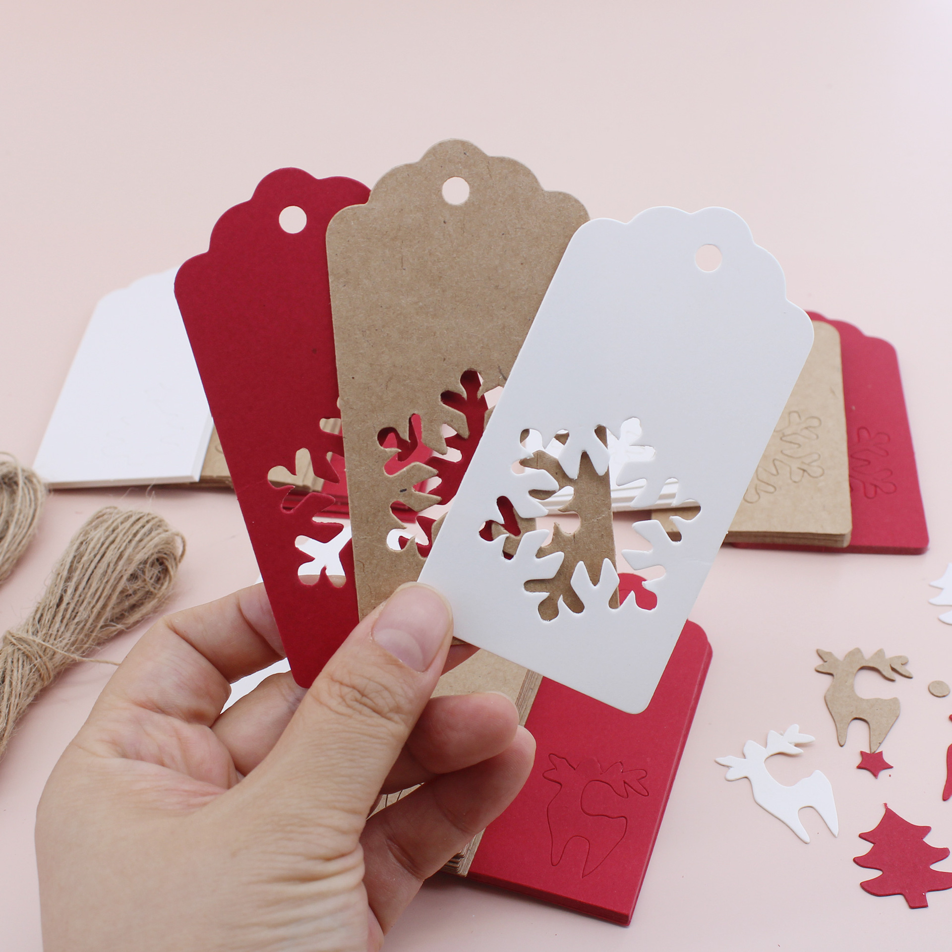 クリスマスツリー吊りカード雪花鹿吊りカードクラフト紙手作り赤カードと麻紐