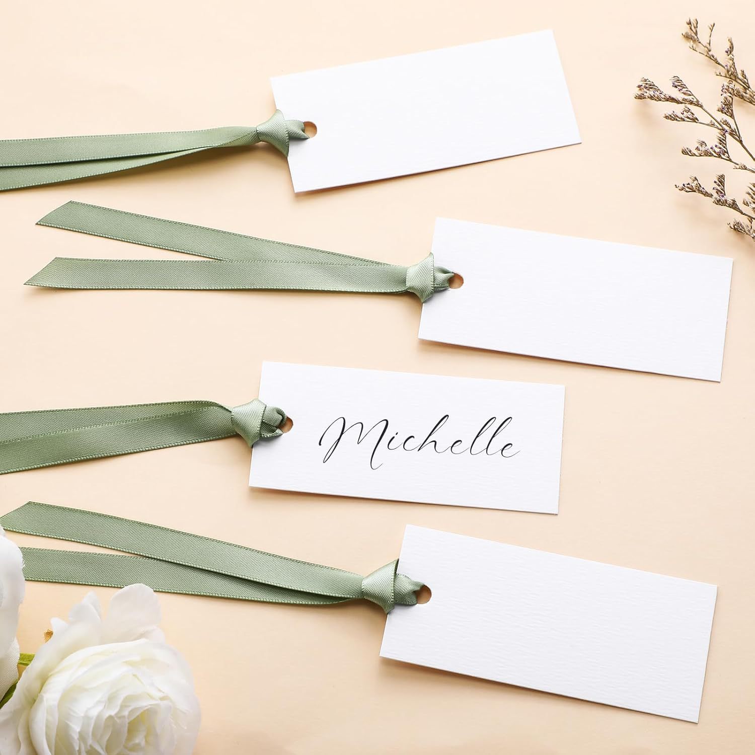 カスタムネームカードデスクトップ空白のウェディングカードサテンリボン付きギフトカードタグパーティー装飾用品