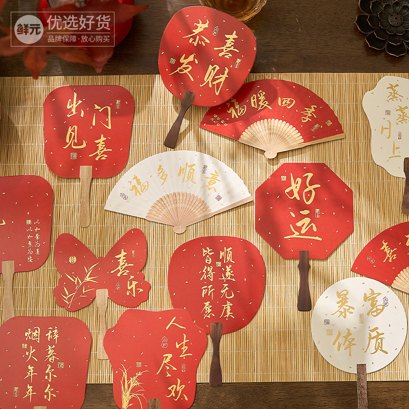 ネット赤国風おめでたい扇形祝福国潮グリーティングカード礼箱装飾果物プレゼント通用礼箱カード30枚