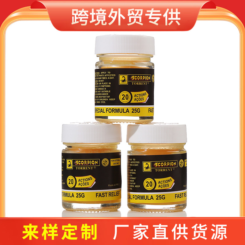 国境を越えた製品サソリクリームサソリ油ミントクリーム25gガラス瓶に清涼菌を入れて爽快な金油