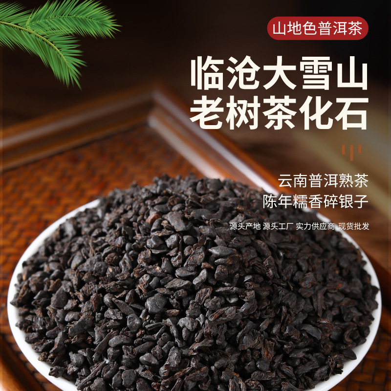 雲南プーアル熟茶臨滄大雪山老樹茶化石500gバラ陳年モチ香砕銀プーアル茶