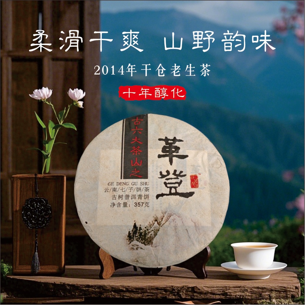 革登純料プーアル老茶古六大茶山陳年プーアル茶餅2014年乾倉中期生茶