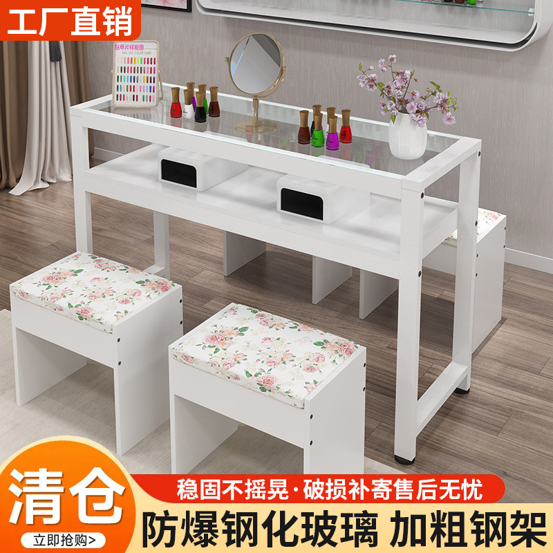 ネイルテーブル、ネイルサロン専用強化ガラステーブル、マニキュアセット、ネットセレブ、エコノミーダブルシングルコンビネーションテーブル
