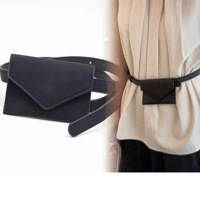 韓国スタイルのファッショナブルなPUレザーエンベロープバッグシングルバックル携帯電話コインウエストバッグ結び目細いベルト多用途の小さなバッグ女性用