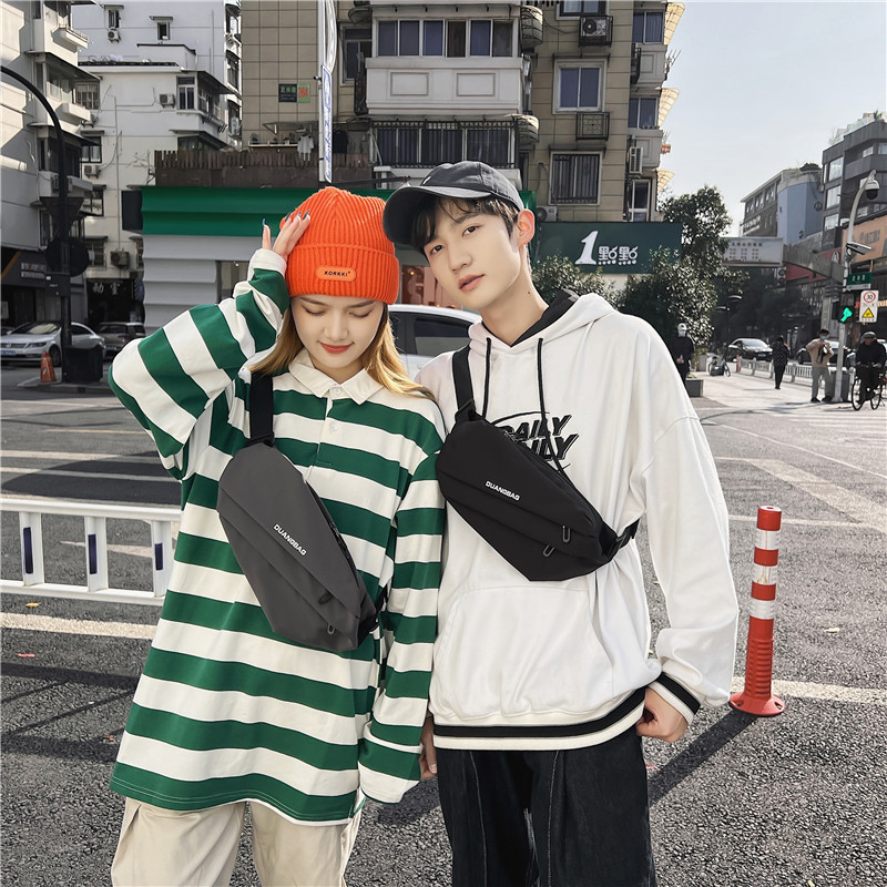 ロゴが印刷されたクロスボーダーの新しいカップル用ウエストバッグ、多機能ショルダークロスボディバッグ、アウトドアスポーツ用コインチェストバッグ