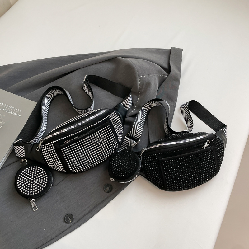 チェストバッグ女性のための夏 2025 新しい韓国スタイルのパーソナライズされたチェーンカラフルなフルダイヤモンドワンショルダークロスボディスパンコール外国貿易小さなウエストバッグ