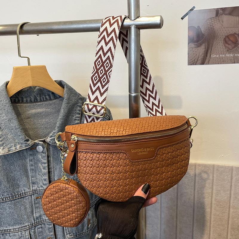 国境を越えたスポーツのウエストバッグ2024の新型の編み物の女性のシングル肩の斜めのショルダーバッグの韓国風のブロードバンドのファッションの胸の包み