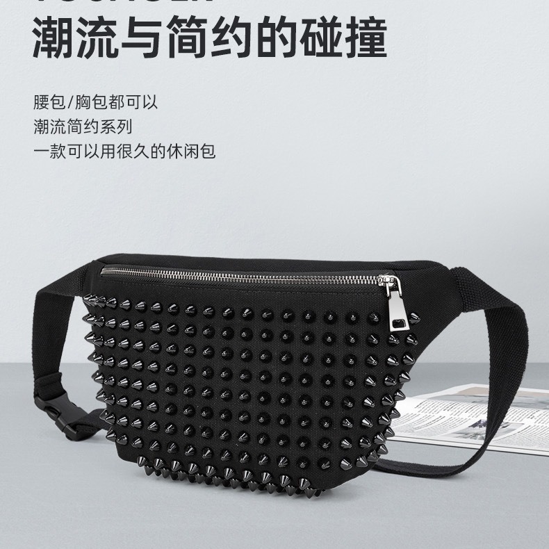 新しいスタイルのメンズ用胸バッグ、スタッズ付きウエストバッグ、ストリートファッションブランド、ニッチで高級感のあるファッショナブルなキャンバスバッグ、女性用ショルダー/斜め掛けバッグ