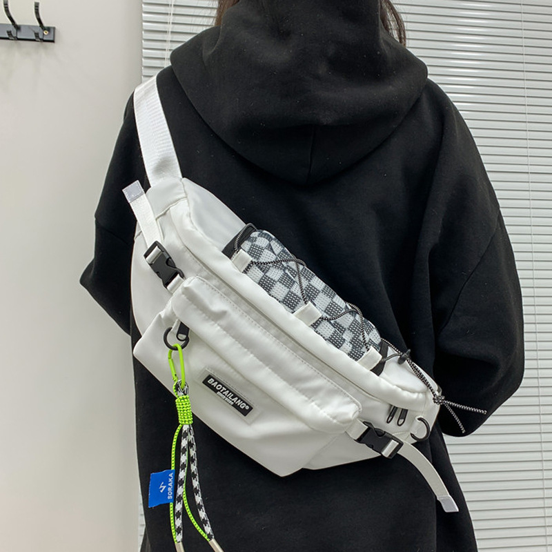 新しいスタイルの男性用チェストバッグ、カジュアルな日本製多用途ショルダーバッグ、学生スポーツ用小型バックパック、女性用トレンディなブランドレターメッセンジャーバッグ