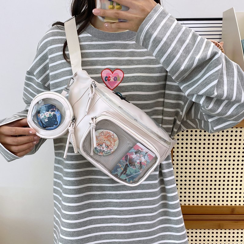 胸包女性日系原宿2023潮新商品bags潮工装香港風帆布斜め掛けシングル肩土クール小方包