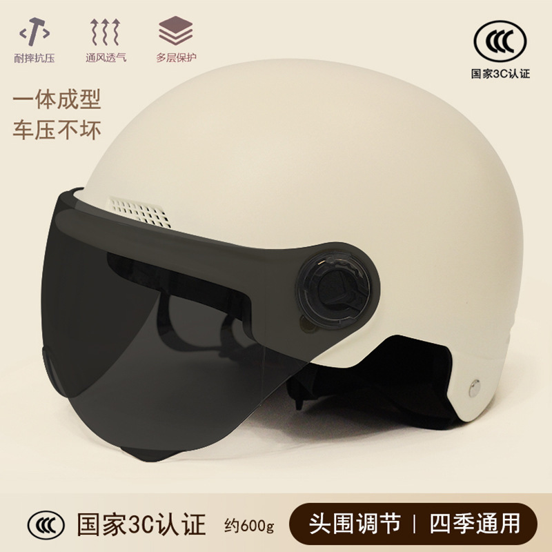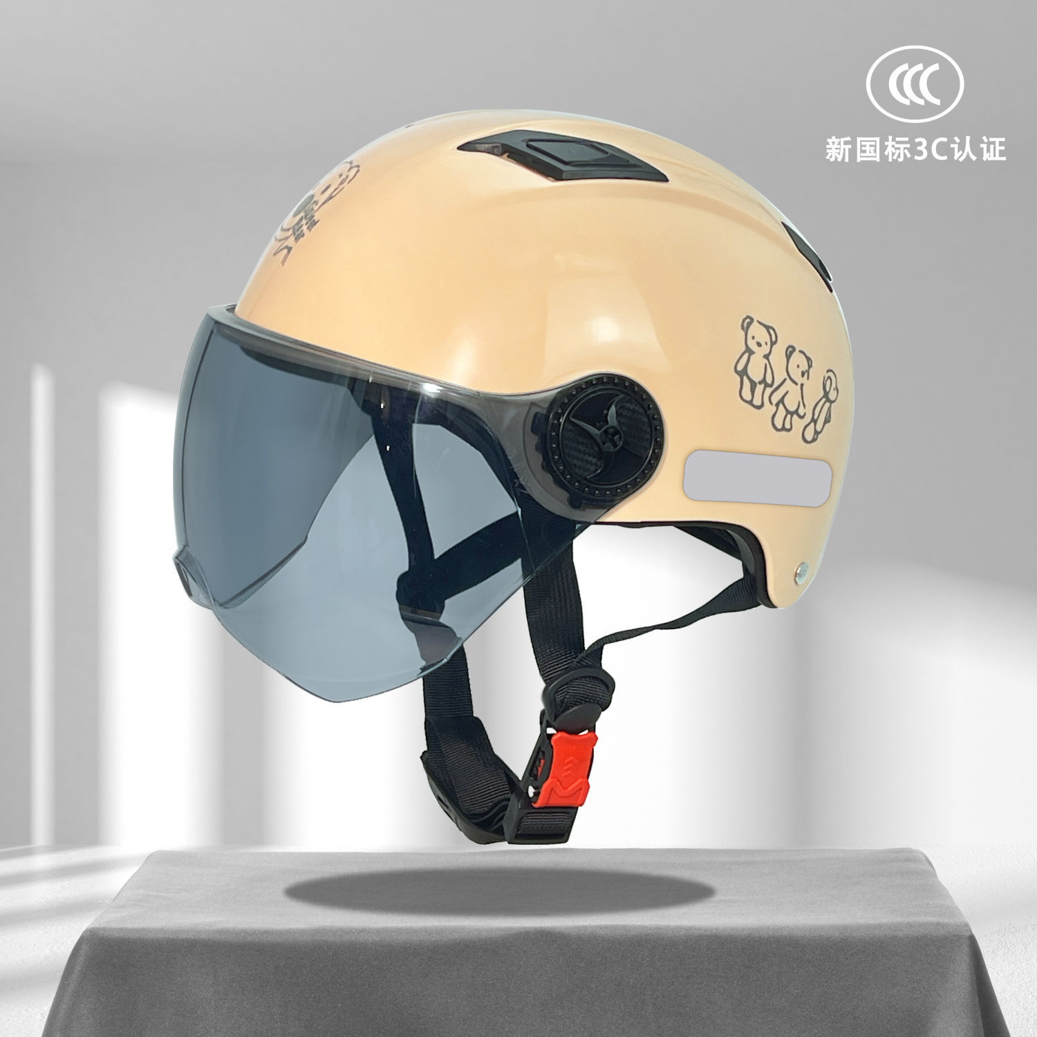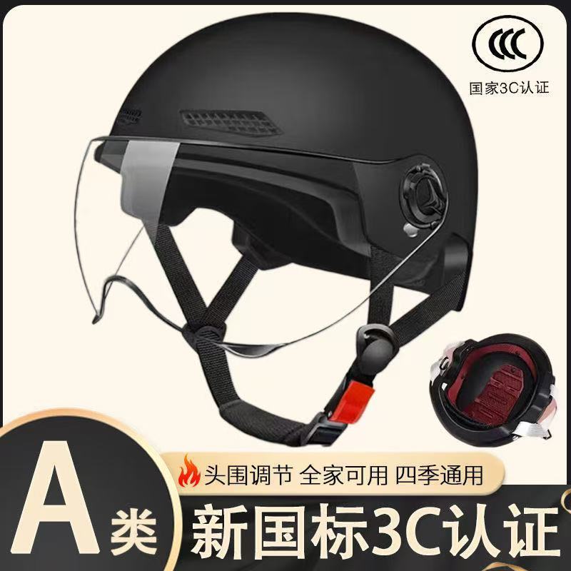 ヘルメットユニバーサル 3C 認証夏の日焼け止め通気性ダブルレンズハーフヘルメットオートバイ電気自動車四季軽量安全帽子