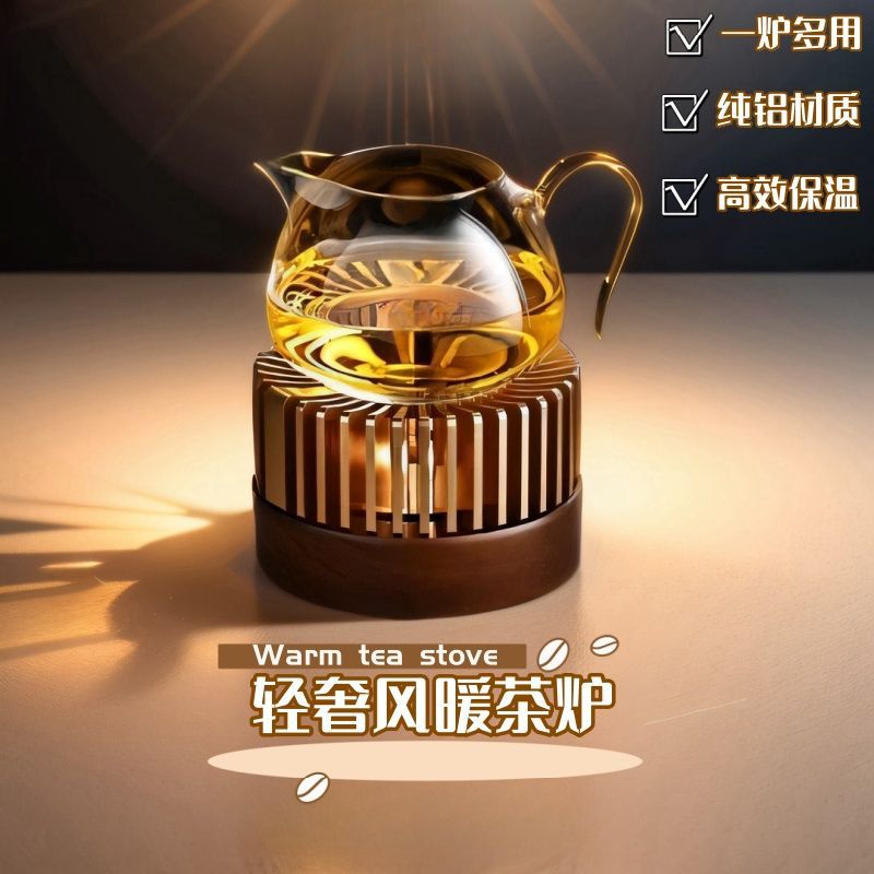 軽奢金属製保温ティーウォーマー、フルーツや花茶の温め、木製台座、キャンドル、アロマ炉、ワインウォーマー、多機能